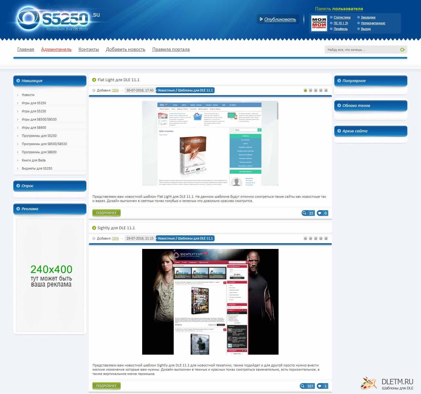 DLETM.RU - качественный интернет-портал с множеством шаблонов на любой вкус, у нас публикуются только качественные шаблоны и для актуальных версий, именно на dletm можно найти все актуальные шаблоны.