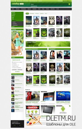 Представляем вам довольно интересный новостной шаблон Catalog для DLE 14.0. Этот дизайн можно отнести как универсальный, хорошо подойдет для новостных, варезных сайтов, торрентов, торрент-трекеров. Шаблон оформлен в белом и зеленом стиле, стоит отметить он очень приятен для глаз.