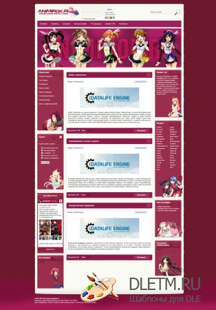 Представляем вам красивый аниме шаблон Animirok для DLE 14.3 в стиле аниме. Данный дизайн выполнен очень красиво и будет приятен для ваших пользователей. В шаблоне имеется все что нужно для посетителей сайта. Шаблон имеет 2-х колоночную структуру и 2 вертикальных меню, верхнее меню выпадающее очень удобное, мы адаптировали его под свежею версию скрипта на сегодняшний день, поправили и справили все найденные нами ошибки также добавлены иконки fontawesome. Если вы хотите создать свой аниме сайт то можете присмотреться к данному дизайну он вполне качественный и красиво смотрится также не забывайте что вы всегда можете посмотреть на нашем сайте другие аниме шаблоны для dle возможно именно там вы найдете то что ищете.