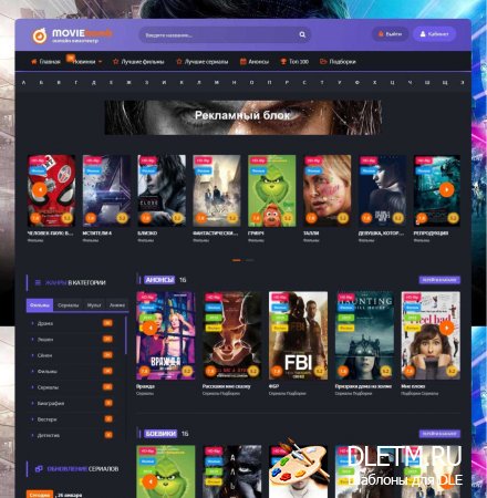 Представляем вам еще один адаптивный кино шаблон Prokino для DLE 17.0 созданный в темных тонах в тоже время просто и все удобно сделано. В дизайне в верхней части присутствует логотип, основное меню без выпадающего эффекта, быстрый поиск и панель пользователя также ниже располагается слайдер, а еще ниже сами публикации постов которые выведены через тег custom что довольно удобно. Также не забывайте смотреть у нас и другие кино шаблоны для dle возможно вы выберите еще что нe будь интересное.